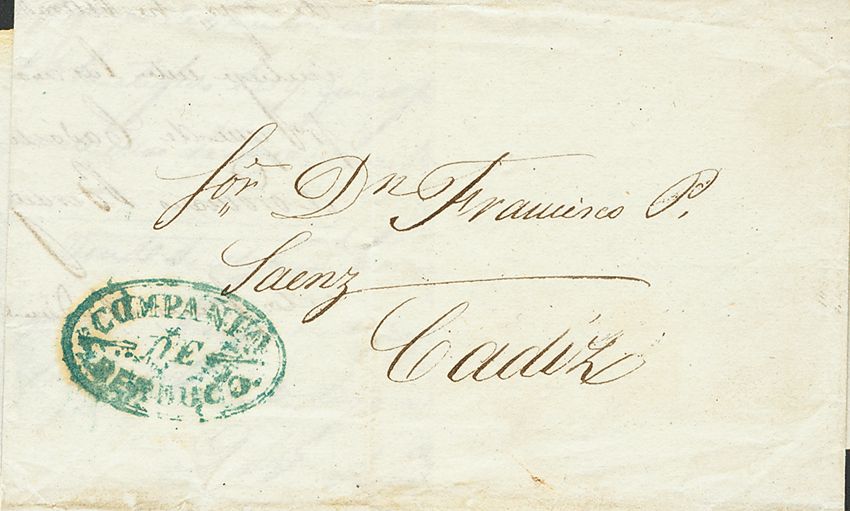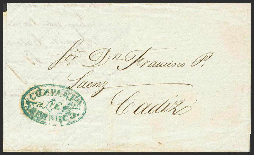 1848. JEREZ a CADIZ. Marca COMPAÑIA / DE / BERDUGO, en azul (P.E.8) edición 2004. MAGNIFICA.