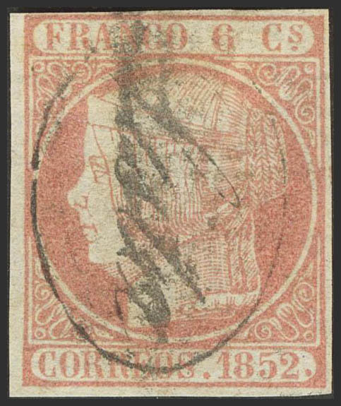 △ 48. 1856. 4 cuartos rojo. Matasello especial CORDOBA / HINOJOSA DEL DUQUE. MAGNIFICO Y RARO. Cert. COMEX.