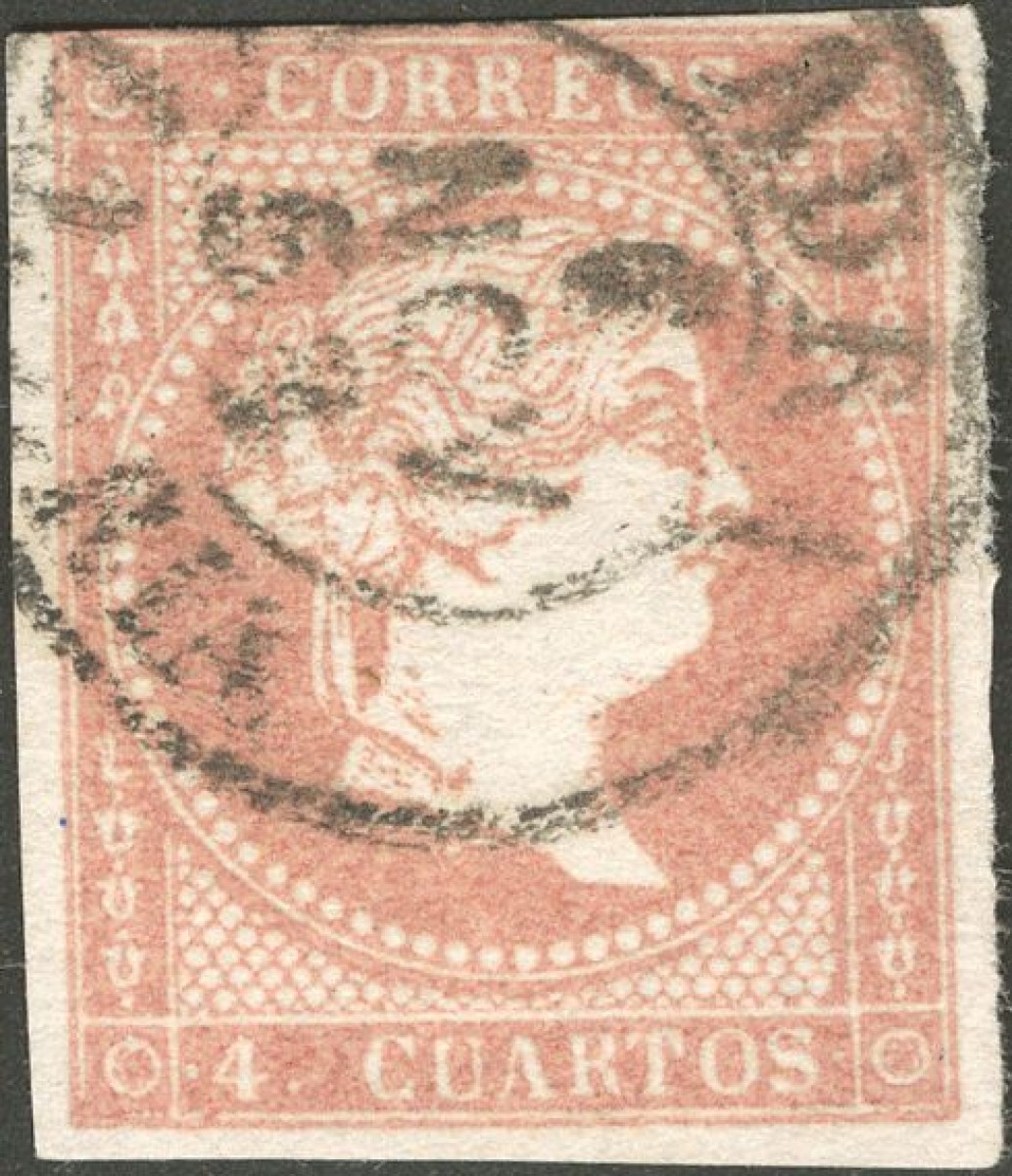 48. 1856. 4 cuartos rojo. Matasello ADRA / ALMERIA (Tipo I).
