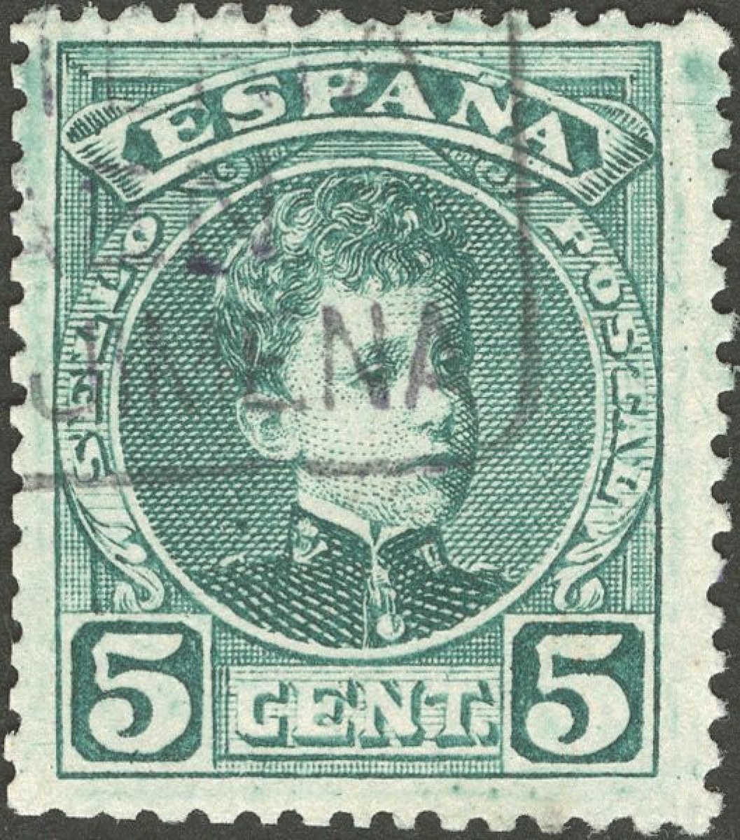 242. 1901. 5 cts verde. Matasello especial CARTERIA / JAEN / G.Y. JIMENA.