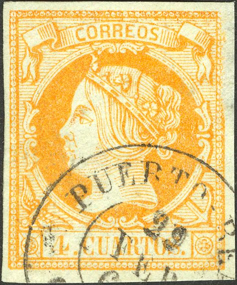 52. 1860. 4 cuartos amarillo. Matasello PUERTO-REAL / CADIZ.