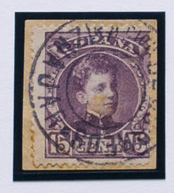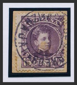 △ 245. 1901. 15 cts lila castaño, sobre fragmento. Matasello ACION DE CORREOS / *IZNAJAR*, de Córdoba. MAGNIFICO.