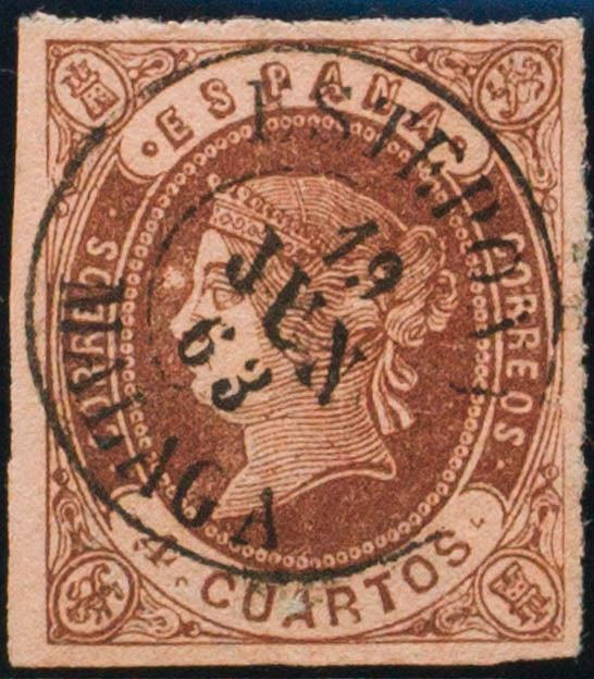 58. 1862. 4 cuartos castaño. Matasello ESTEPONA / MALAGA. MAGNIFICO.
