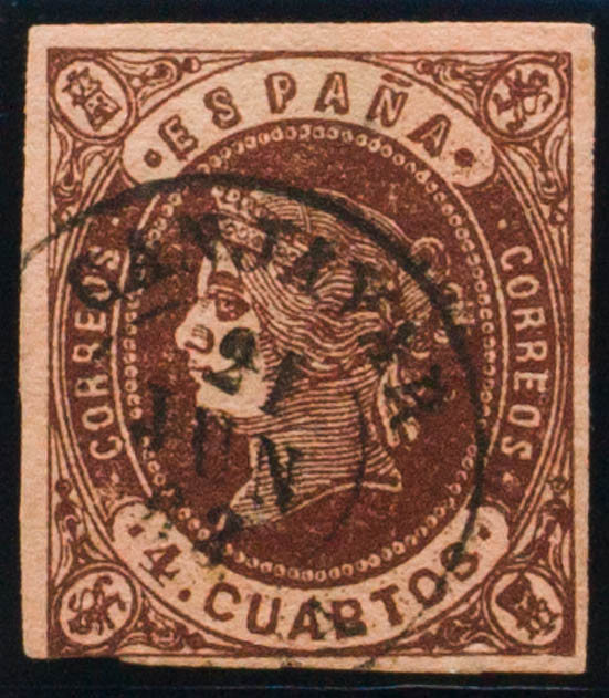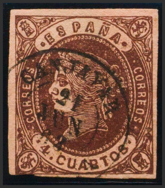 58. 1862. 4 cuartos castaño. Matasello CANJAYAR / ALMERIA. MAGNIFICO.