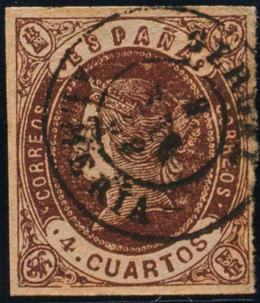 58. 1862. 4 cuartos castaño. Matasello GERGAL / ALMERIA. MAGNIFICO Y RARISIMO.