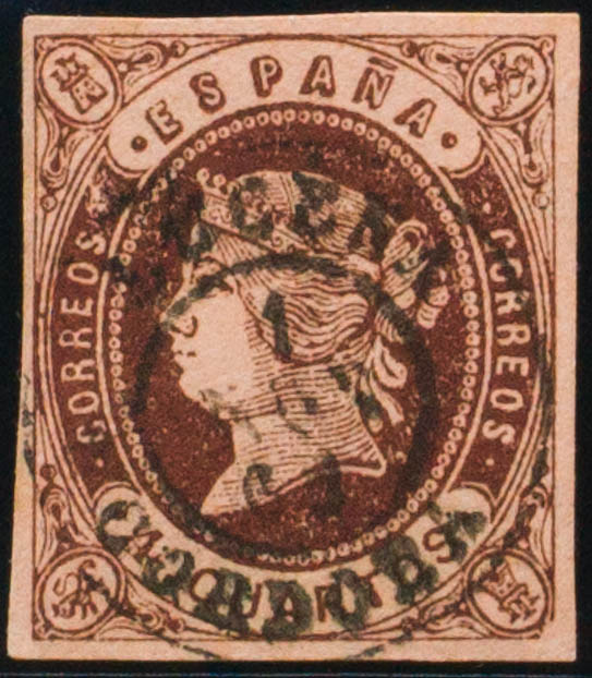 58. 1862. 4 cuartos castaño. Matasello LUCENA / CORDOBA. MAGNIFICO.