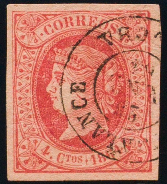 64. 1864. 4 cuartos rojo. Matasello BUJALANCE / CORDOBA. MAGNIFICO.