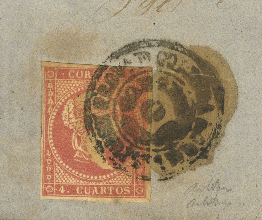 △ 48. 1856. 4 cuartos rojo. Matasello especial CORDOBA / HINOJOSA DEL DUQUE. MAGNIFICO Y RARO. Cert. COMEX.