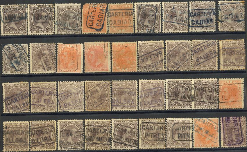 210, 219. (1900ca). Colección de carterías de la provincia de GRANADA, generalmente buenas estampaciones. IMPRESCINDIBLE EXAMINAR.