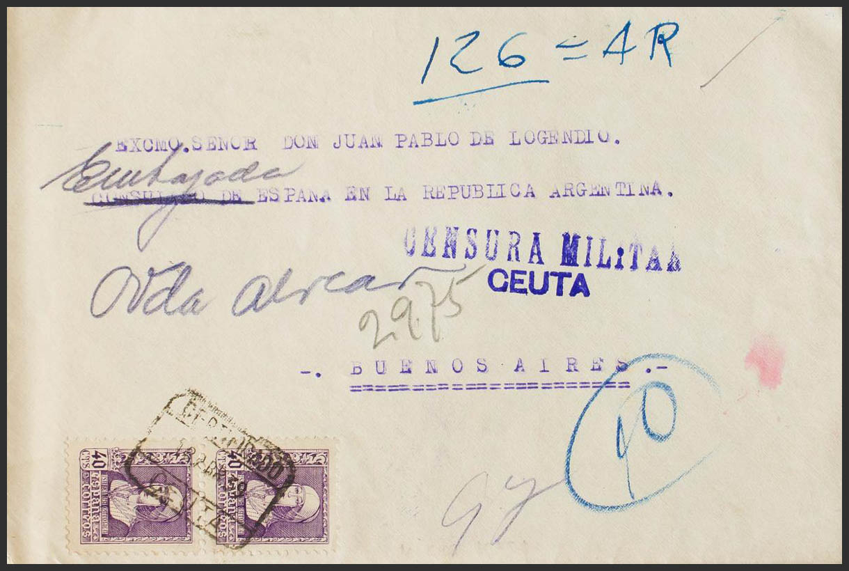 AndalucÃa. Historia Postal. CERTIFICADO / CEUTA, al dorso llegada. MAGNIFICA.