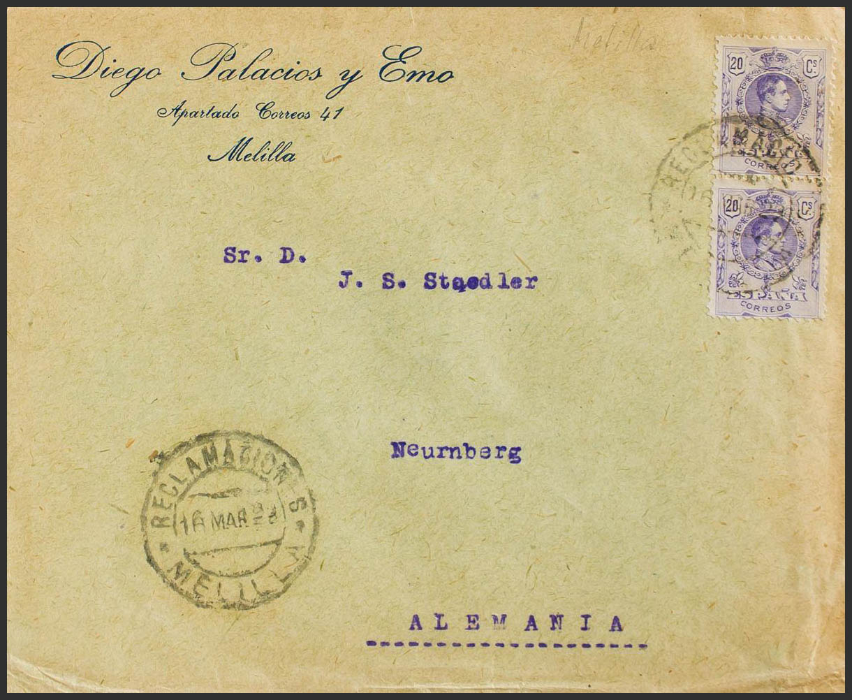 AndalucÃa. Historia Postal. RECLAMACION / MELILLA. MAGNIFICA.