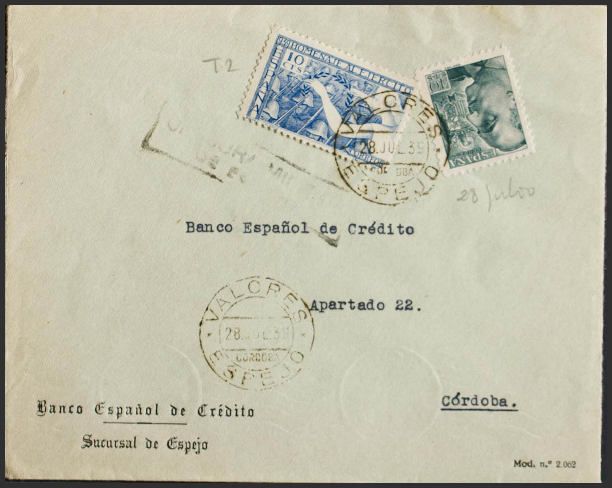 AndalucÃa. Historia Postal. VALORES / ESPEJO, al dorso llegada. MAGNIFICA.