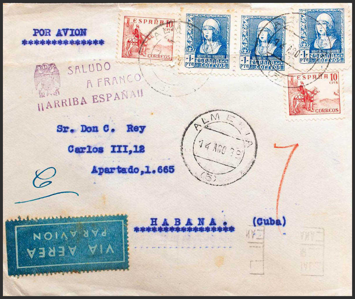 AndalucÃa. Historia Postal. ALMERIA / (5), al dorso llegada. MAGNIFICA.