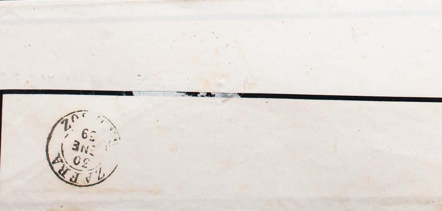 48. 1859. 4 cuartos rojo. FUENTEOVEJUNA a ZAFRA. Matasello FUENTE OBEJUNA / CORDOBA. MAGNIFICA.