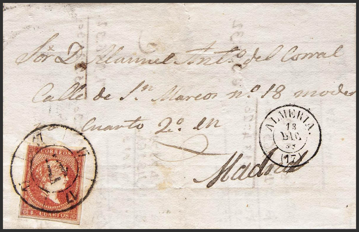 AndalucÃa. Historia Postal. R.CARRETA Nº17, de AlmerÃa. MAGNIFICA.