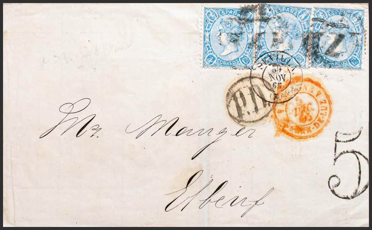 AndalucÃa. Historia Postal. R.CARRETA Nº7, de Sevilla. MAGNIFICA E INUSUAL COMPOSICION PARA COMPLETAR LA TARIFA DE 12 CUARTOS.