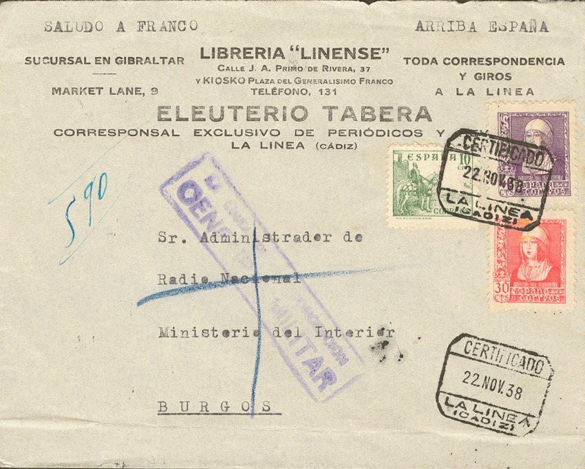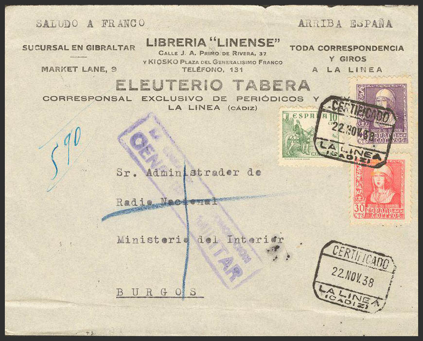 AndalucÃa. Historia Postal. CERTIFICADO / LA LINEA (CADIZ). MAGNIFICA.