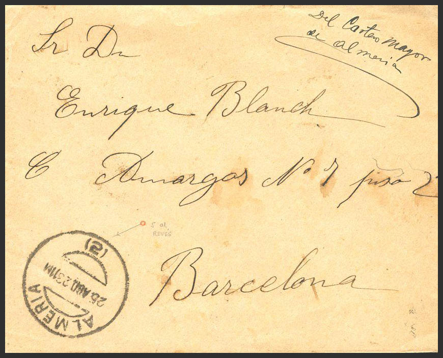 Andalucía. Historia Postal. "DEL CARTERO MAYOR DE ALMERIA". MAGNIFICA.