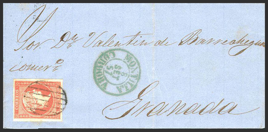 AndalucÃa. Historia Postal. En el frente MONTILLA / CORDOBA (Tipo I), en verde. MAGNIFICA.