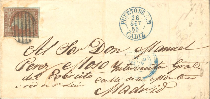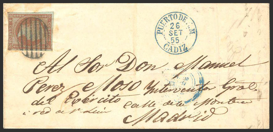 AndalucÃa. Historia Postal. En el frente PUERTO DE S. M. / CADIZ, en azul. MAGNIFICA.