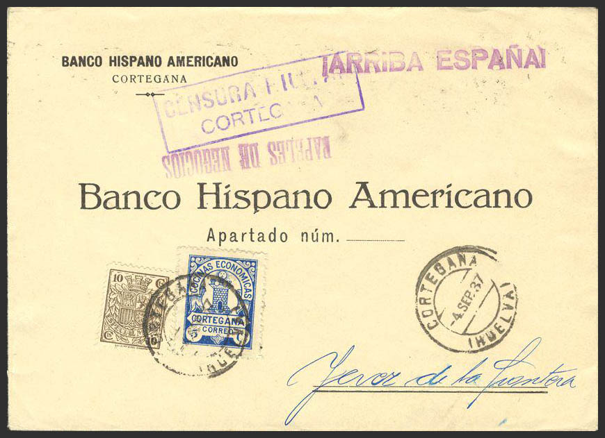AndalucÃa. Historia Postal. Fiscal. CORTEGANA / HUELVA. MAGNIFICA.