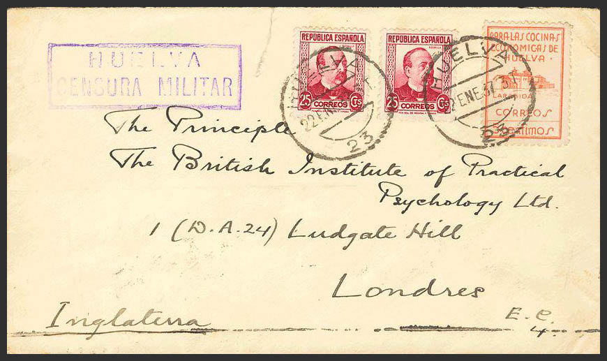 AndalucÃa. Historia Postal. HUELVA / (23), al dorso llegada. MAGNIFICA.