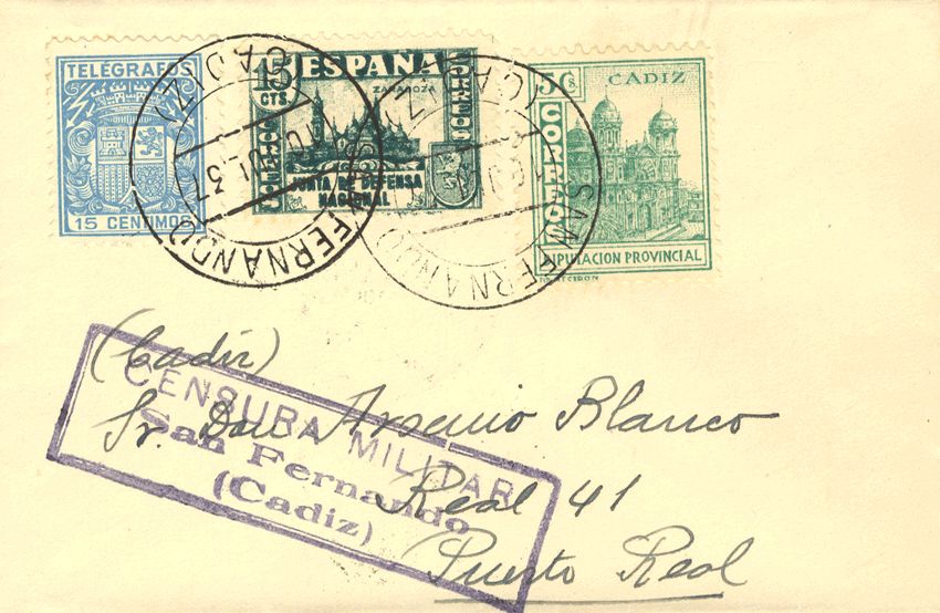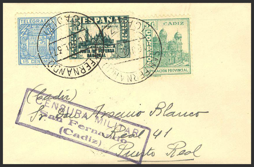 AndalucÃa. Historia Postal. SAN FERNANDO / (CADIZ), al dorso llegada. MAGNIFICA E INUSUAL FRANQUEO.