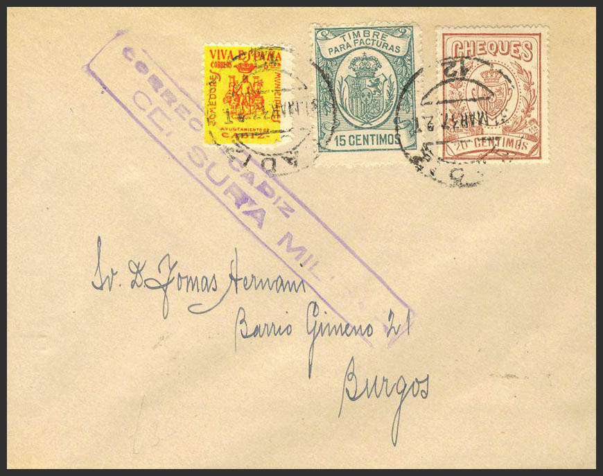 AndalucÃa. Historia Postal. Fiscal. CADIZ / (12). MAGNIFICA.