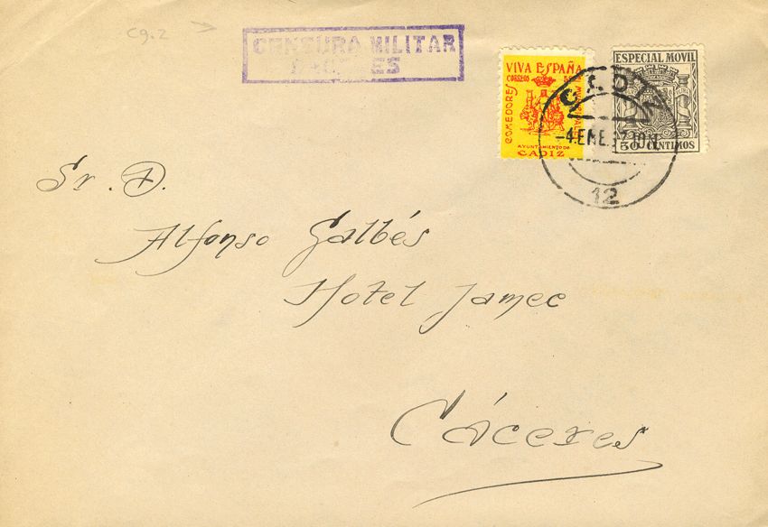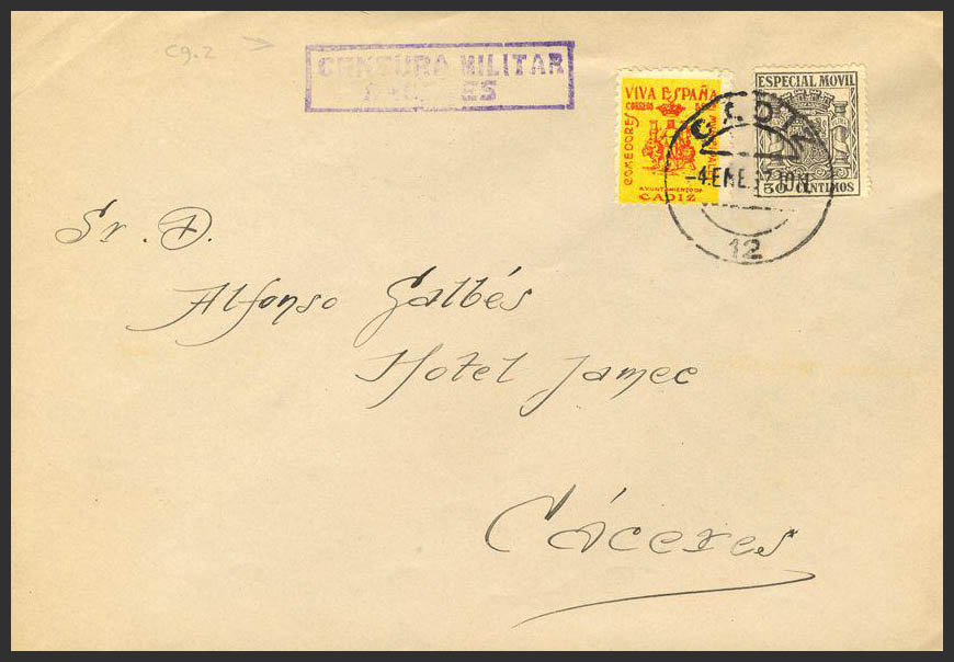 AndalucÃa. Historia Postal. Fiscal. CADIZ / (12), al dorso llegada. MAGNIFICA.