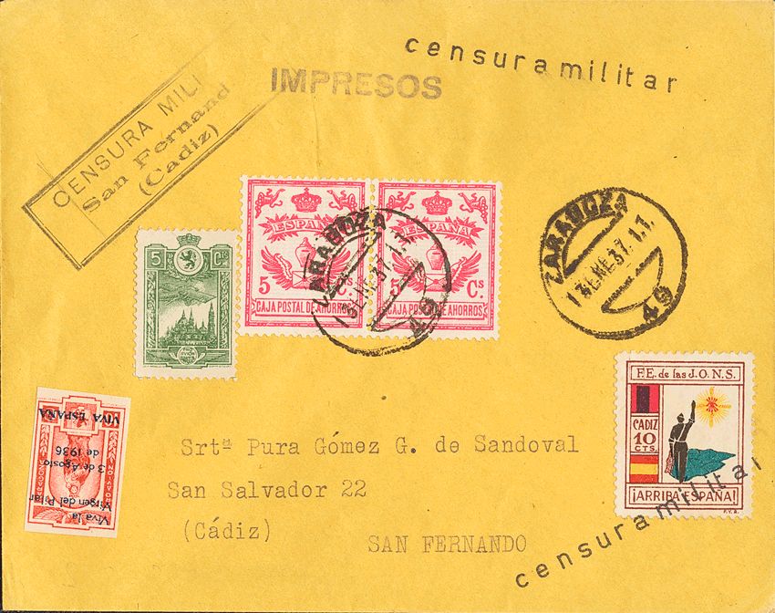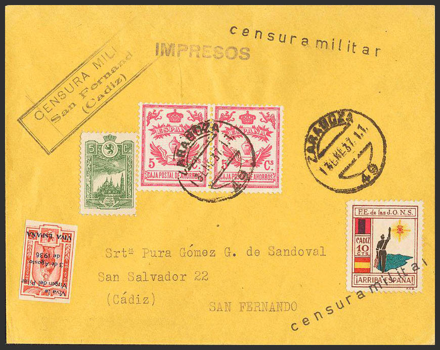 AndalucÃa. Historia Postal. CENSURA MILITAR / SAN FERNANDO / (CADIZ). MAGNIFICA.