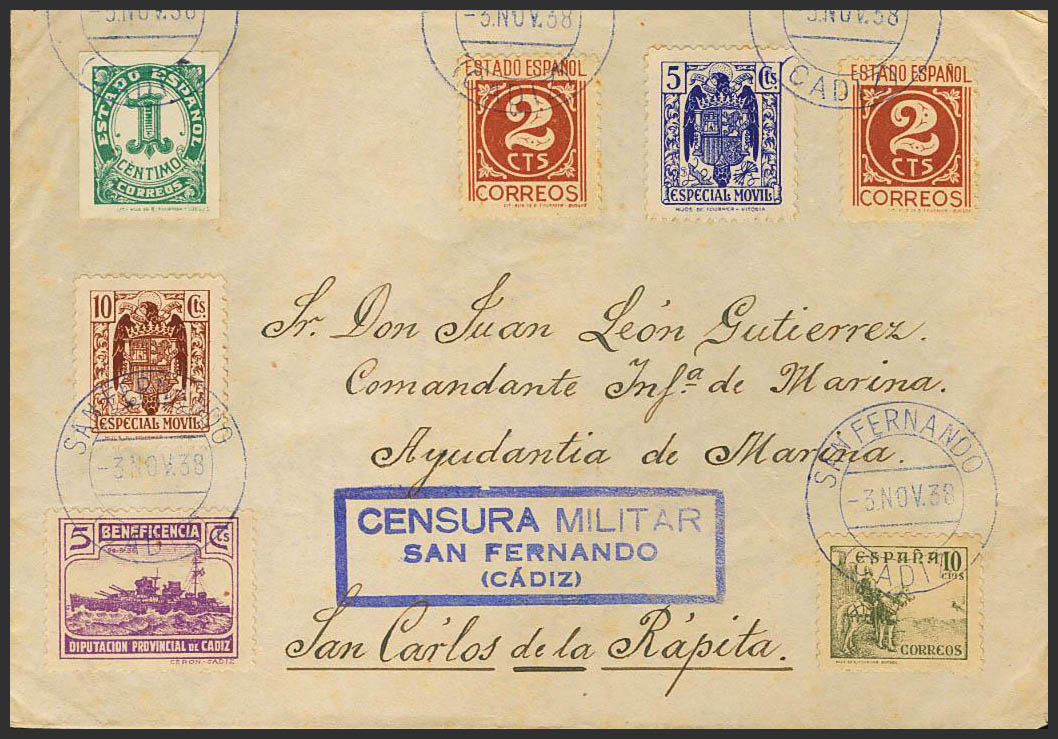 AndalucÃa. Historia Postal. SAN FERNANDO / (CADIZ), en azul. MAGNIFICA.