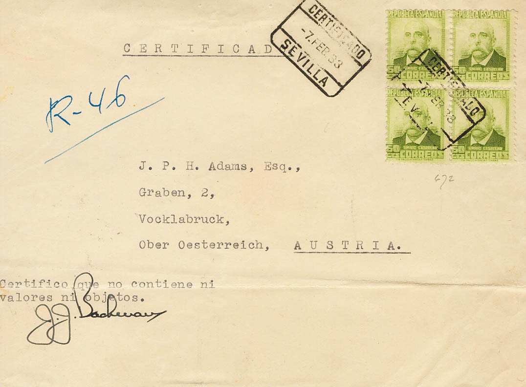 AndalucÃa. Historia Postal. CERTIFICADO / AUSTRIA. MAGNIFICA.