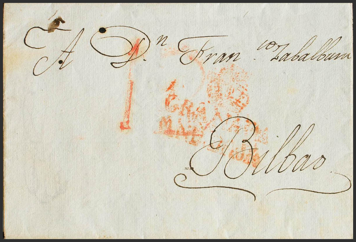 1824. GRANADA a BILBAO. Marca GRANADA / ANDª BAJA (P.E.20) edición 2004. BONITA Y RARA.