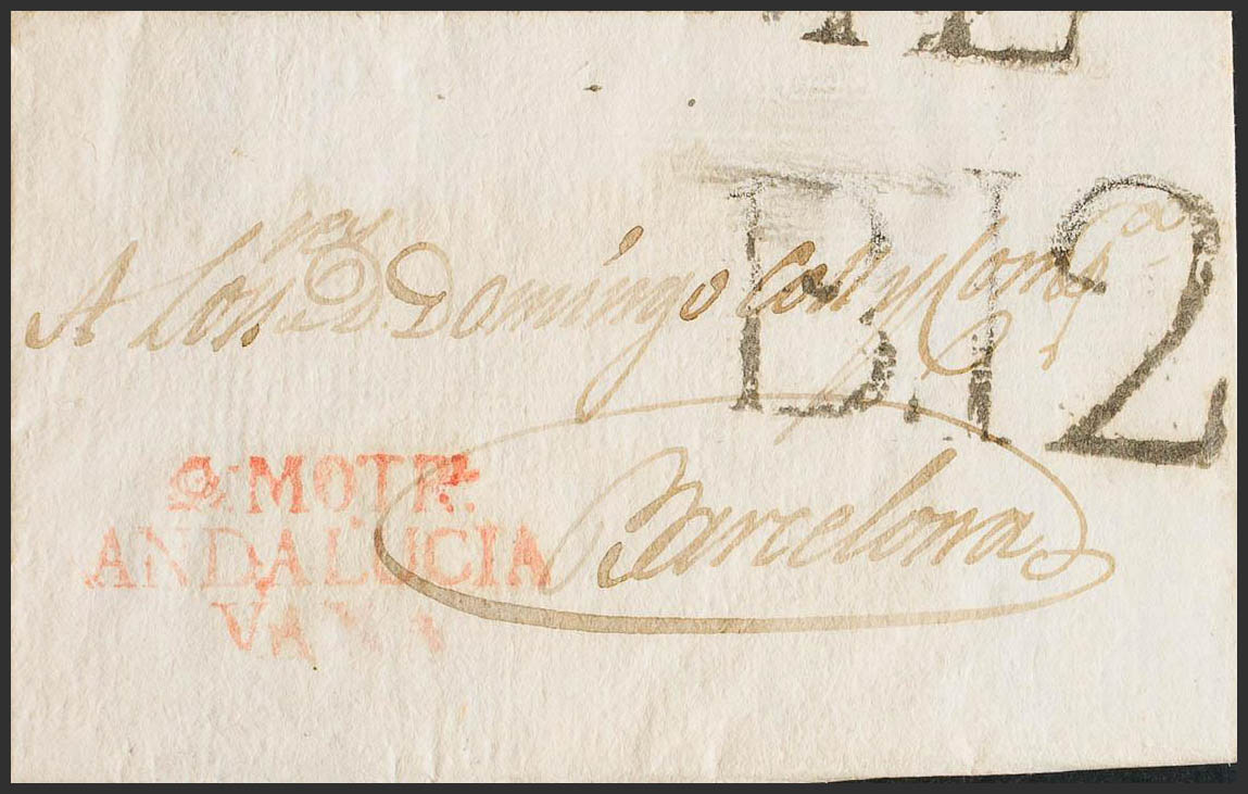 1818. MOTRIL a BARCELONA. Marca MOTRL. / ANDALUCIA / VAXA (P.E.3) edición 2004. MAGNIFICA.