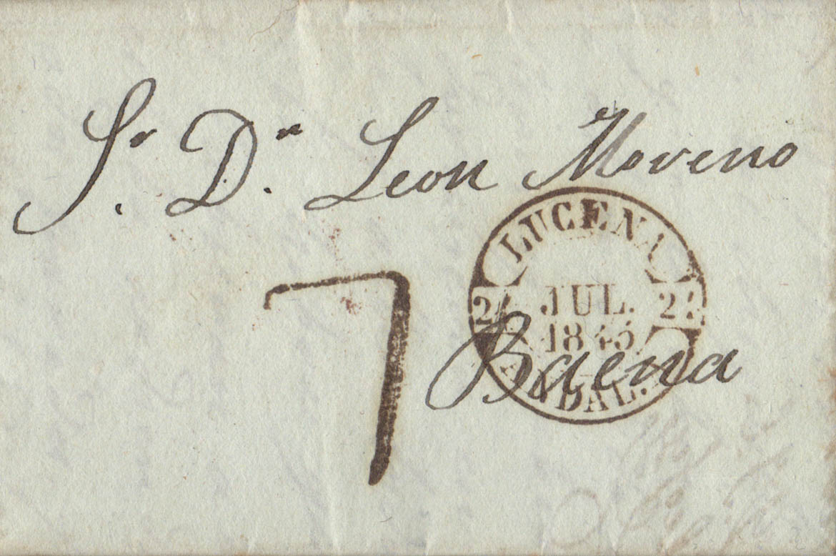 1845. LUCENA (CORDOBA) a BAENA. Baeza LUCENA / ANDAL.A. MAGNIFICA.