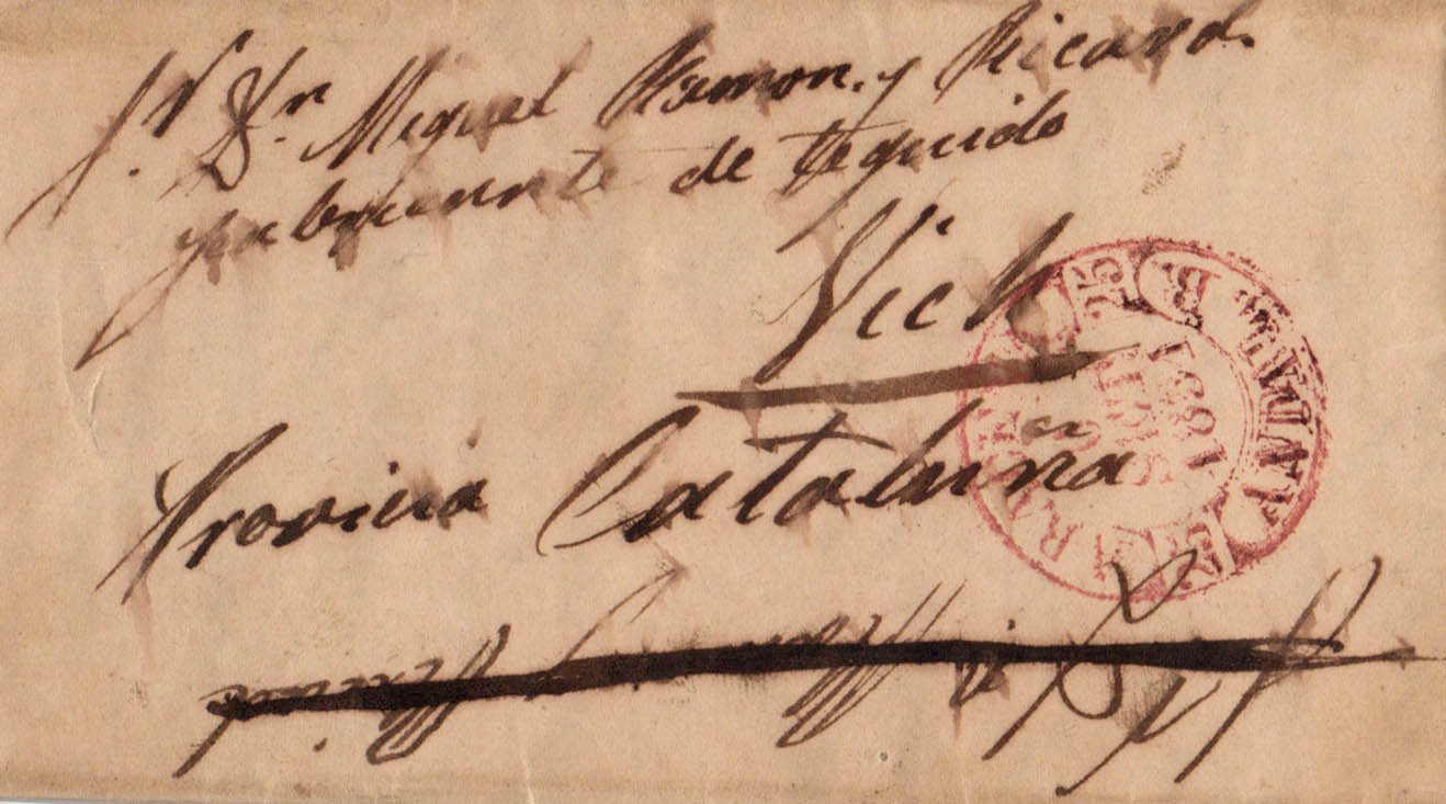 1851. ARACENA a VICH (BARCELONA). Baeza ARACENA / ANDAL.B. MAGNIFICA.