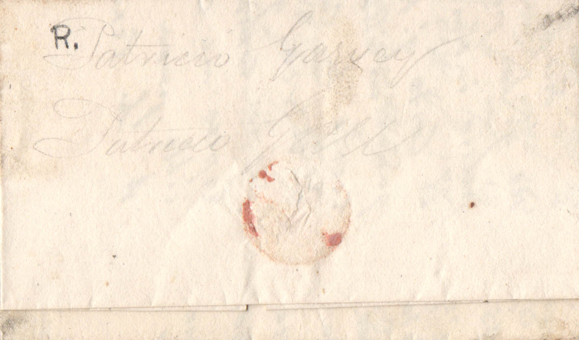 1846. CONSTANTINA (SEVILLA) a JEREZ DE LA FRONTERA. Baeza CONSTANTINA / ANDAL.B., en rojo. MAGNIFICA Y RARA.