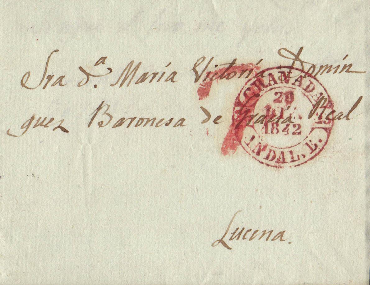 1842. GRANADA a LUCENA (CORDOBA). Baeza GRANADA / 20-DIC-1842 / ANDAL. B. MAGNIFICA ESTAMPACION, UNA DE LAS PRIMERAS FECHAS DE USO DEL FECHADOR BAEZA EN GRANADA.