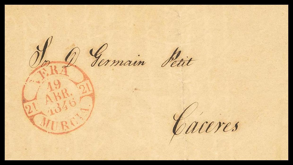 1846. PURCHENA (ALMERIA) a CACERES. Baeza VERA / MURCIA, en tránsito. MAGNIFICA.