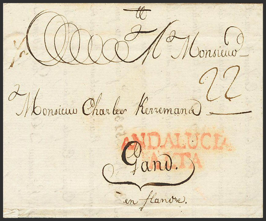 1778. CADIZ a GANTE (BELGICA). Marca ANDALUCIA / ALTA (P.E.12) edición 2004. MAGNIFICA E INUSUAL DESTINO.