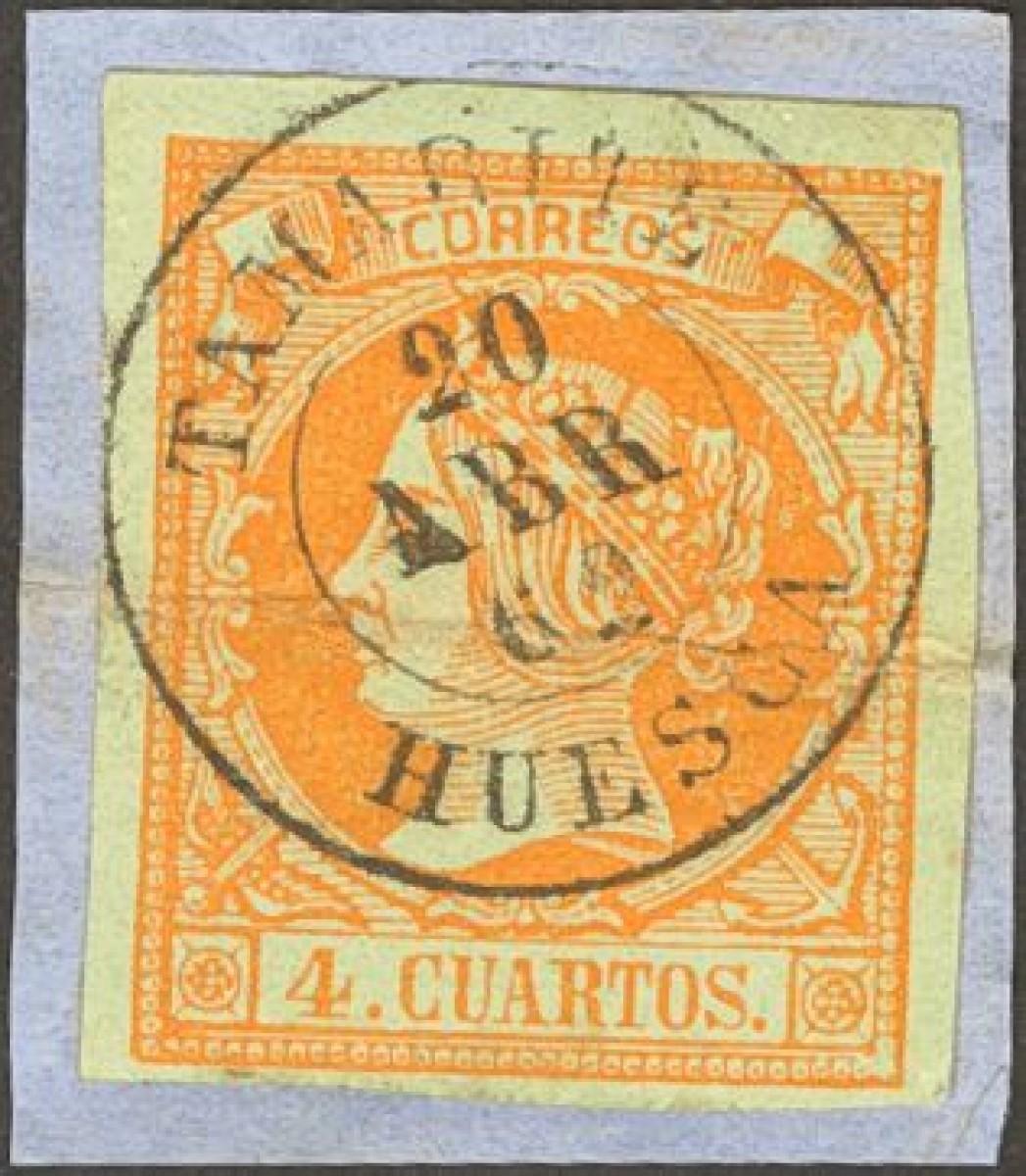 52. 1860. 4 cuartos amarillo. Matasello TAMARITE / HUESCA. LUJO.