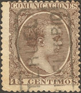 219. 1889. 15 cts castaño violeta. Matasello carterÃa VIVEL DE RIO / TERUEL.