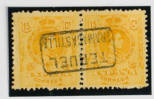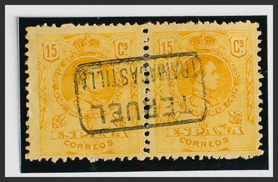 271(2). 1909. 15 cts amarillo, pareja. Matasello carterÃa TERUEL / TRAMACASTILLA. MAGNIFICA.