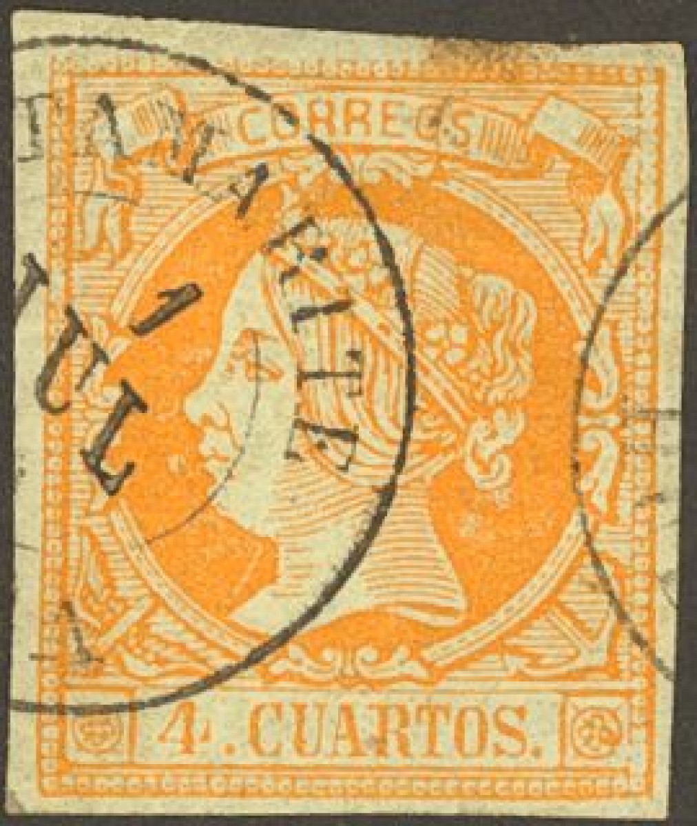 52. 1860. 4 cuartos amarillo. Matasello TAMARITE / HUESCA.