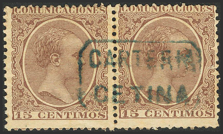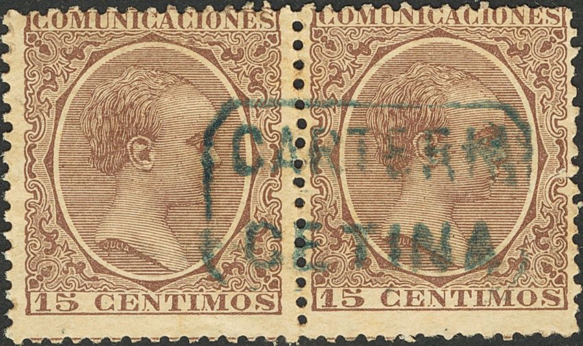 Aragón. Filatelia. CARTERIA / CETINA, en azul, pareja. MAGNIFICA.