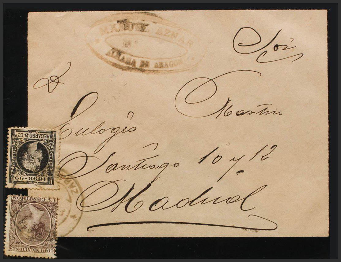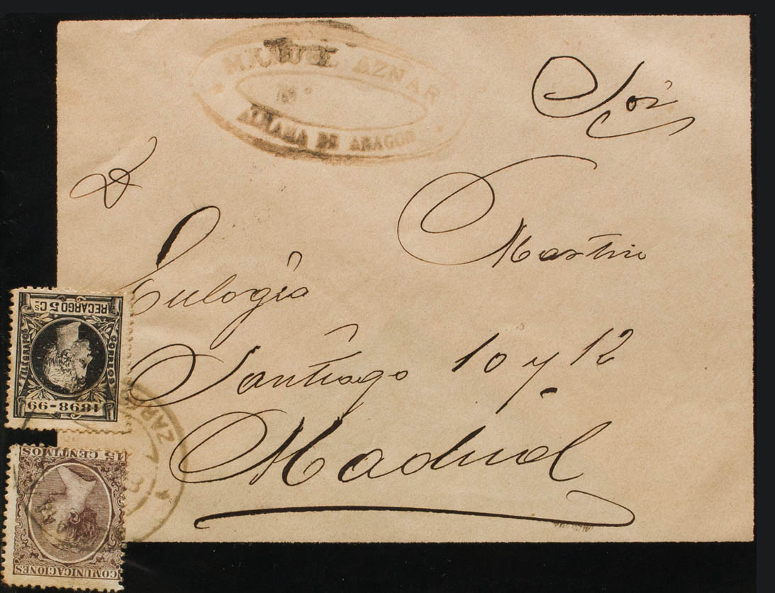 Aragón. Historia Postal. Matasello ALHAMA DE ARAGON / ZARAGOZA. MAGNIFICA.