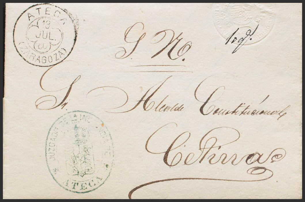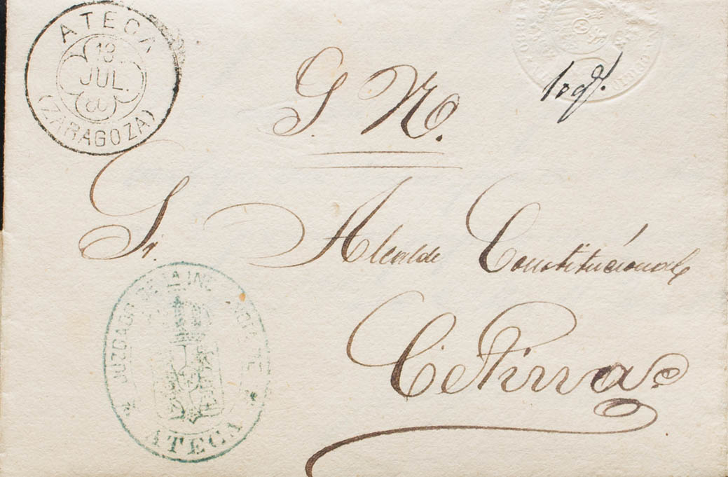 Aragón. Historia Postal. Marca JUZGADO DE 1ª INSTANCIA DE ATECA. MAGNIFICA.