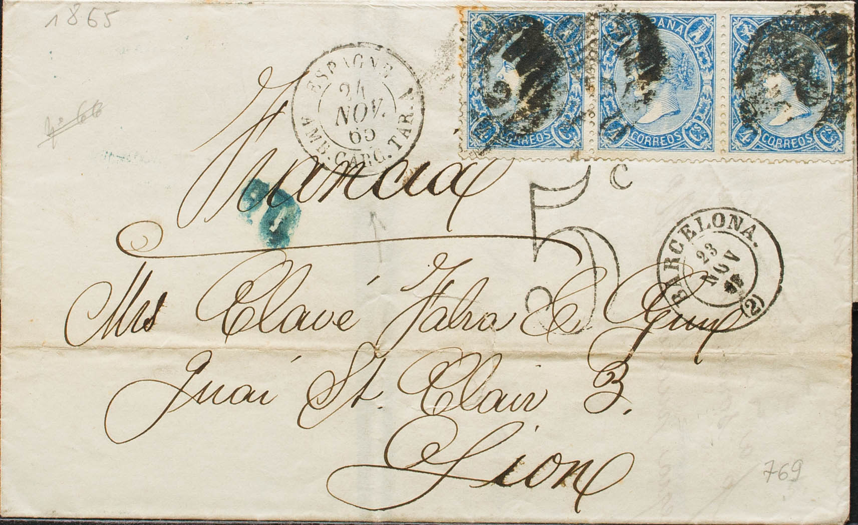 Aragón. Historia Postal. PARRILLA Nº2, de Barcelona. INUSUAL COMBINACION.