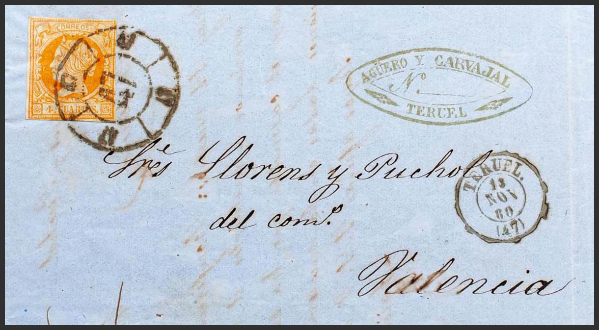 Aragón. Historia Postal. R.CARRETA Nº47, de Teruel. MAGNIFICA E INUSUAL.