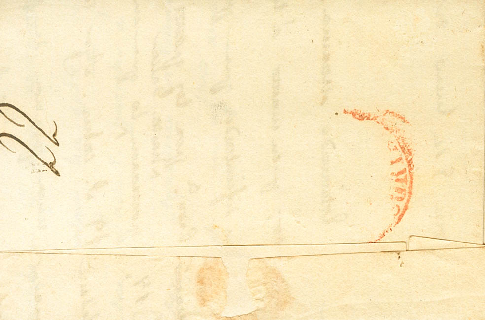 17. 1853. 6 cuartos carmÃn (margen justo). GALLUR (ZARAGOZA) a SORIA. En el frente baeza GALLUR / ARAGON. BONITA Y MUY RARA.